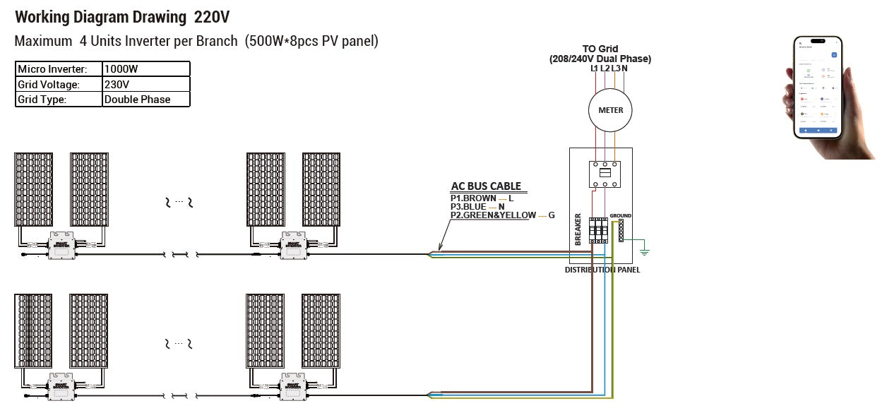 | 4KW | 8pcs 500W | For Pitched / Flat Roof or Ground Installation | 4PCS 1000W | 1pcs | 50m |