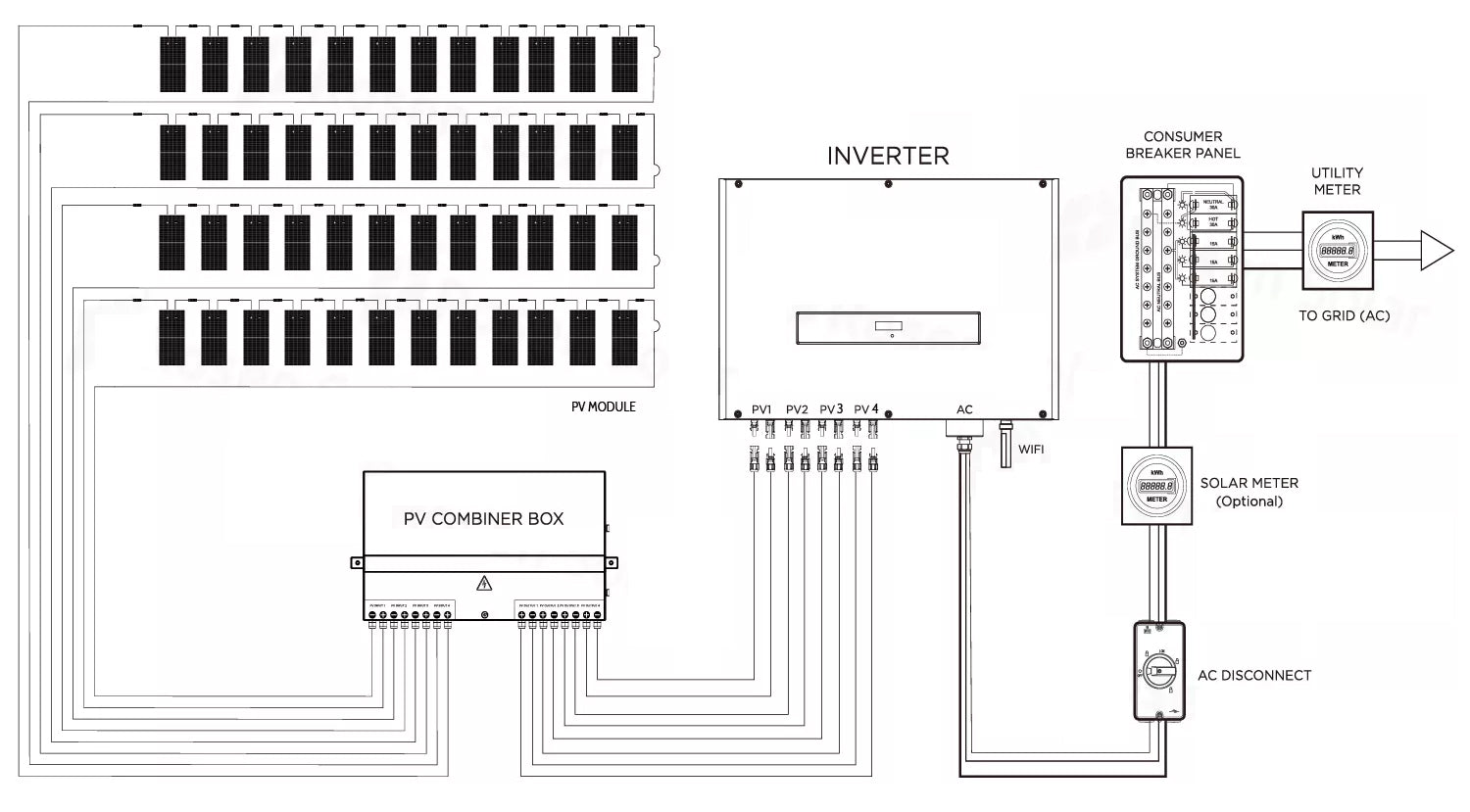 | Item | PV Solar Panel | Inverter | Mounting System | PV combiner box | PV Cable |